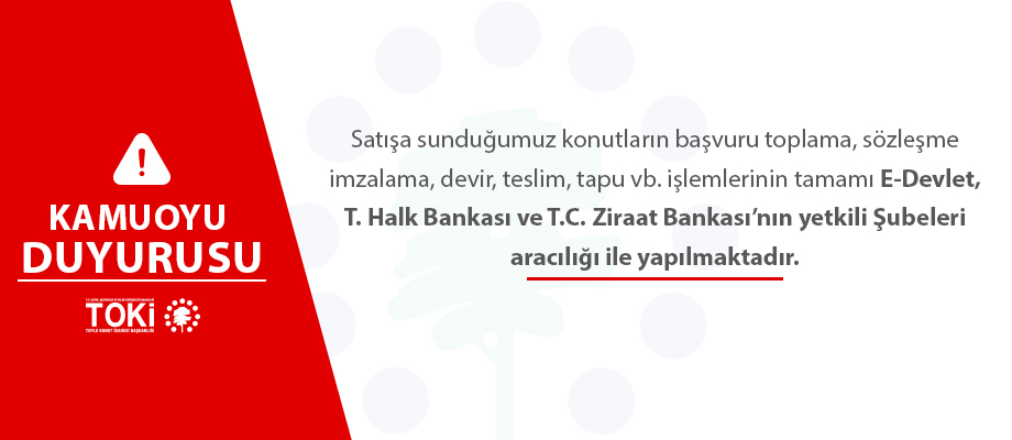 Satışa sunduğumuz konutların başvuru toplama, sözleşme imzalama, devir, teslim, tapu vb. işlemlerinin tamamı
