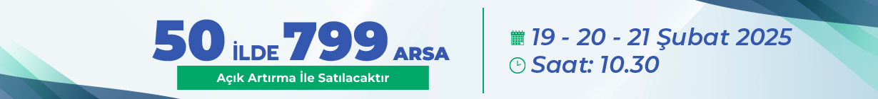 Çevre, Şehircilik ve İklim Değişikliği Bakanlığı Toplu Konut İdaresi Başkanlığı (TOKİ), 50 ilde 799 arsayı 19-20-21 Şubat 2025 tarihlerinde açık artırma yöntemiyle satacak.